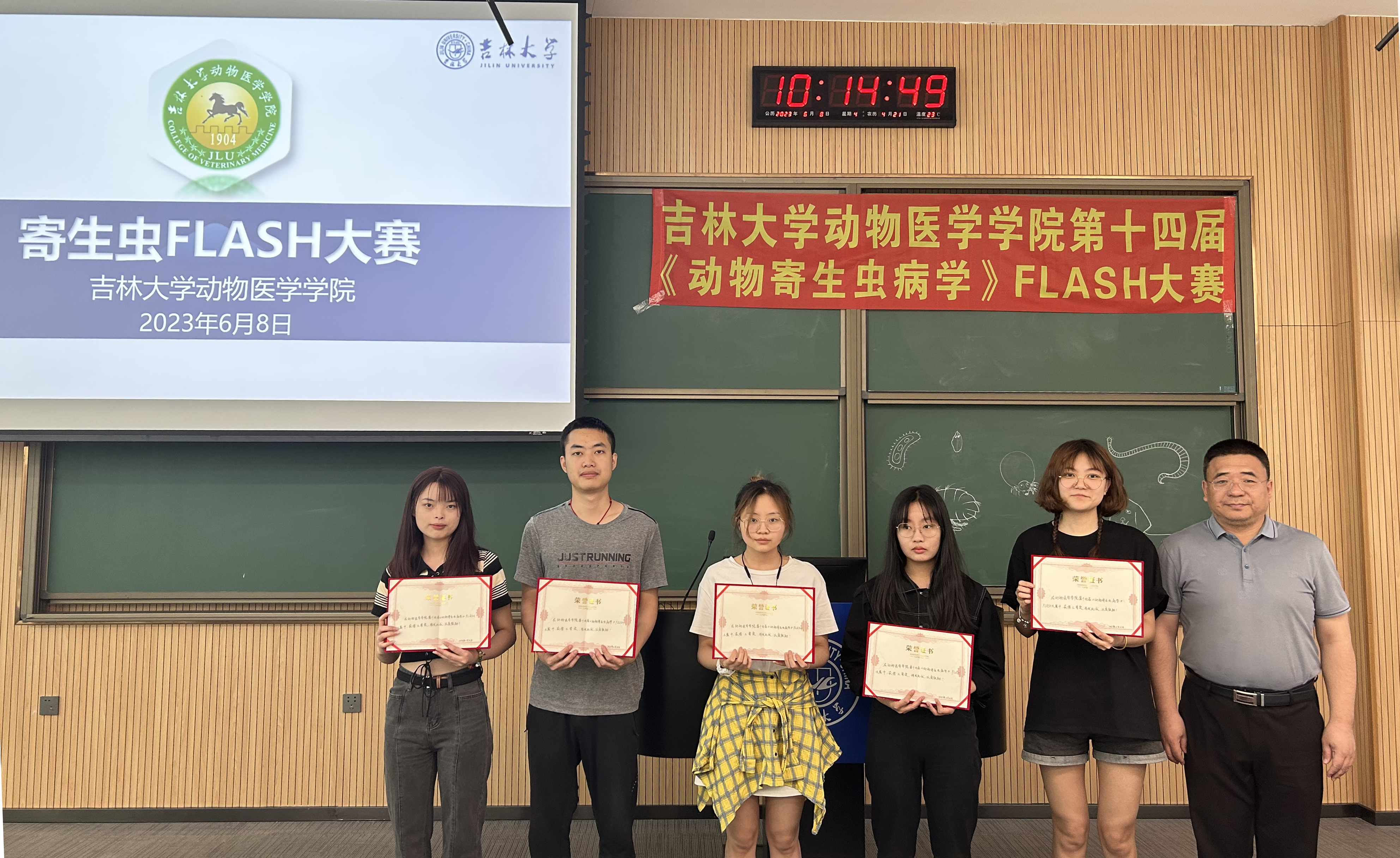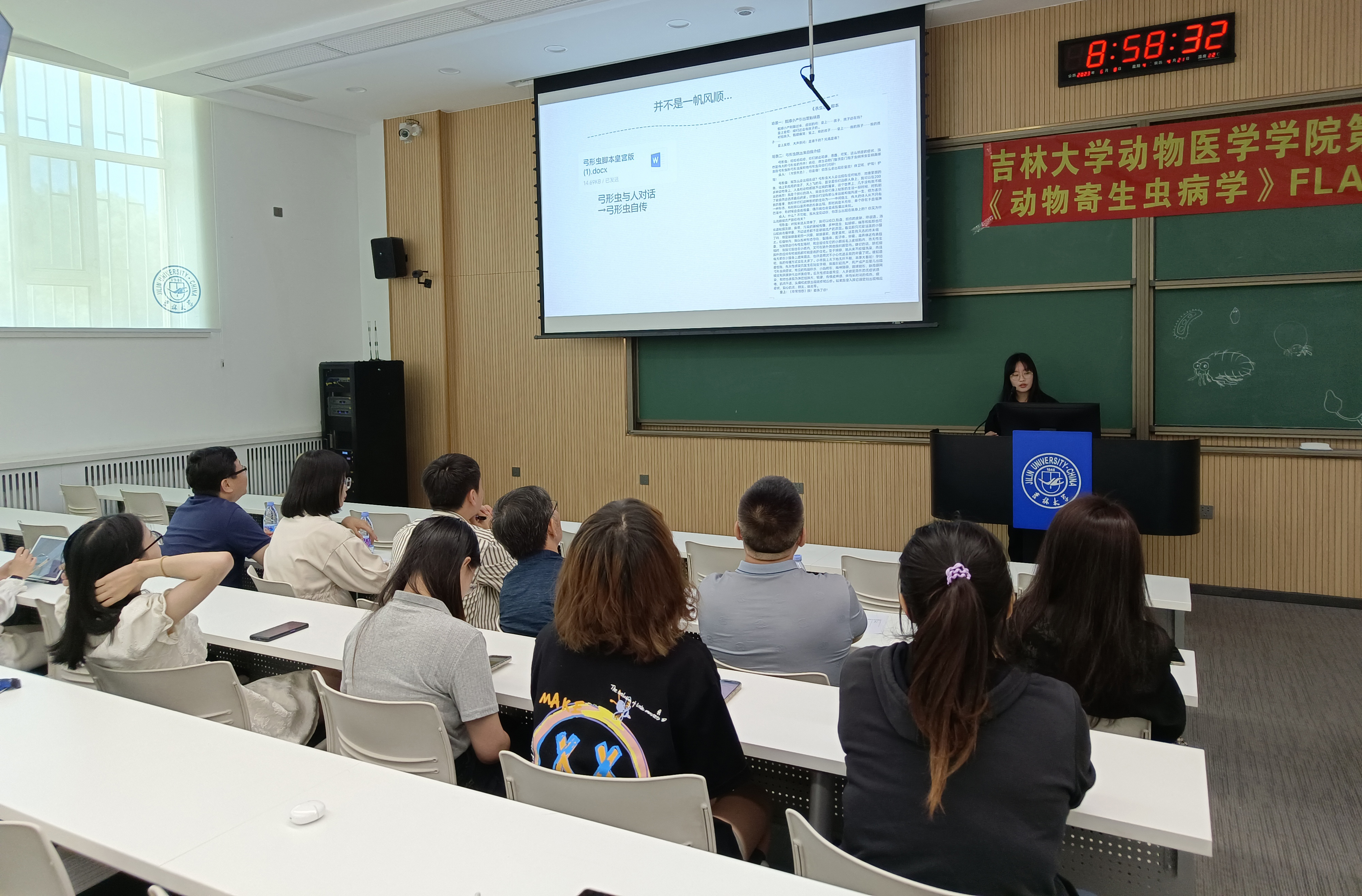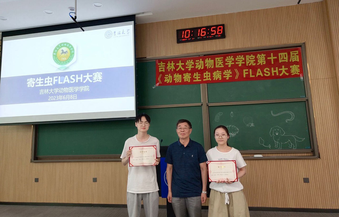 于2023年6月8日上午9点在科学讲堂100教室,成功举办了第十四届《动物寄生虫病学》FLASH大赛。大赛现场的评委嘉宾有国家级一流本科课程《动物寄生虫病学》课程负责人张西臣教授,动物医学百家乐真人视讯