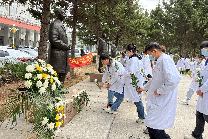 同学们向兽医先贤们敬献鲜花
