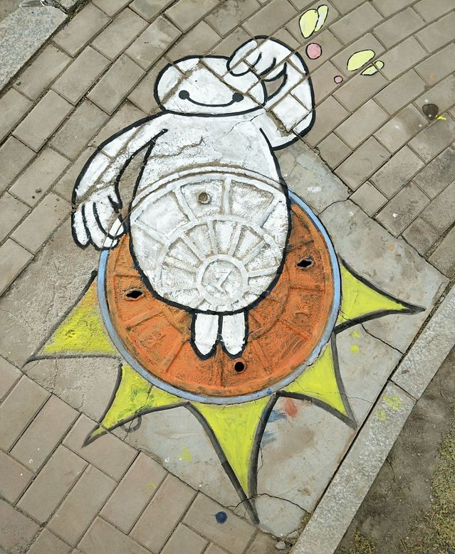 井盖涂鸦后,吸引了众多老师和学生的目光,引得大家纷纷驻足欣赏。本次活动更是吸引了媒体人的关注,得到了“看吉林”的宣传报道。绘制井盖的抖音小视频甚至吸引了超过4W的点赞量,足以证实活动圆满成功。