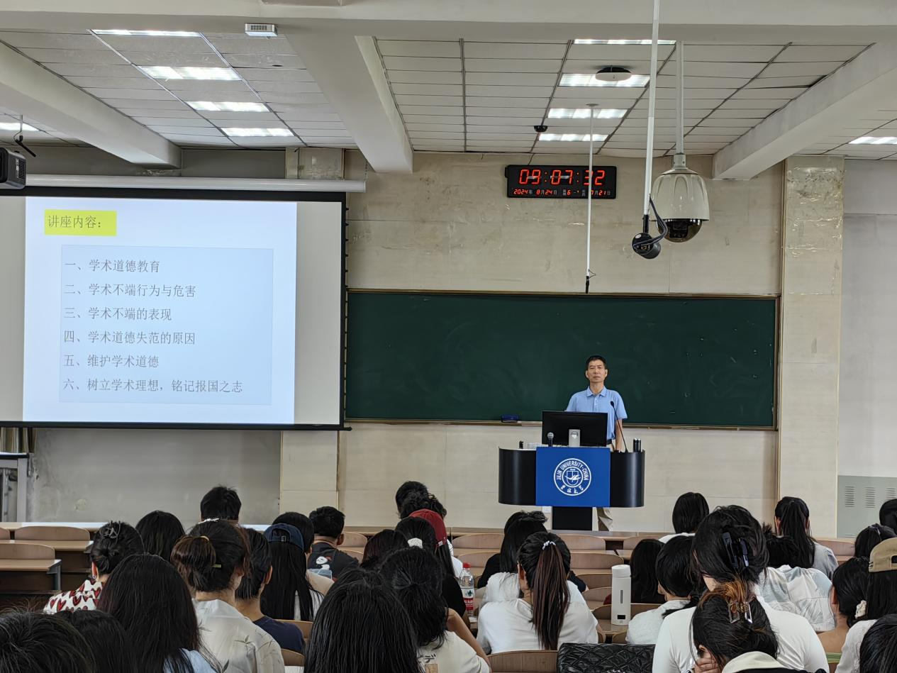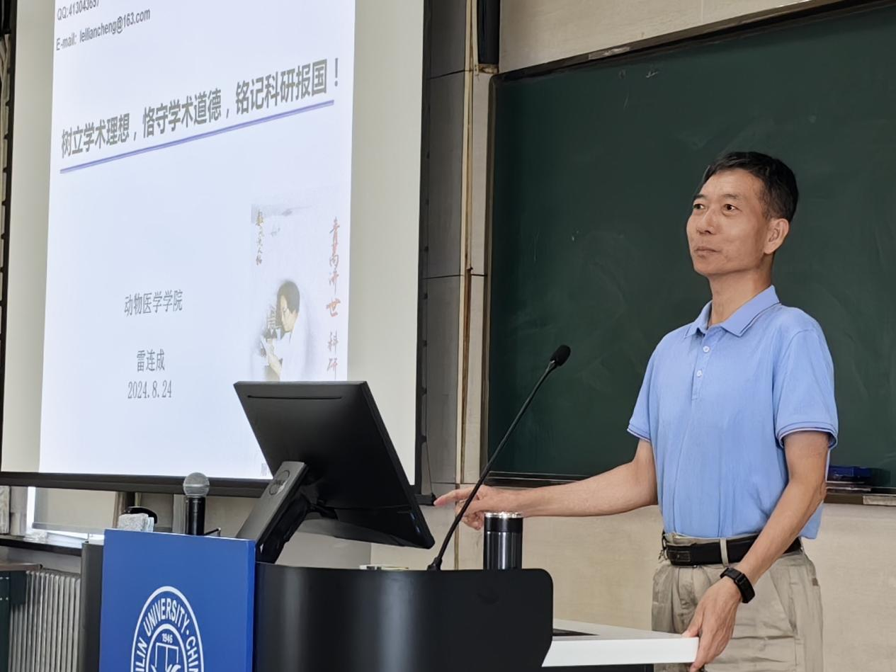 研究生会于8月24日举办研究生新生入学系列教育——科学道德与学风教育。讲座邀请雷连成教授作为主讲人,研究生辅导员王慧丽老师主持,2024级全体研究生参加。