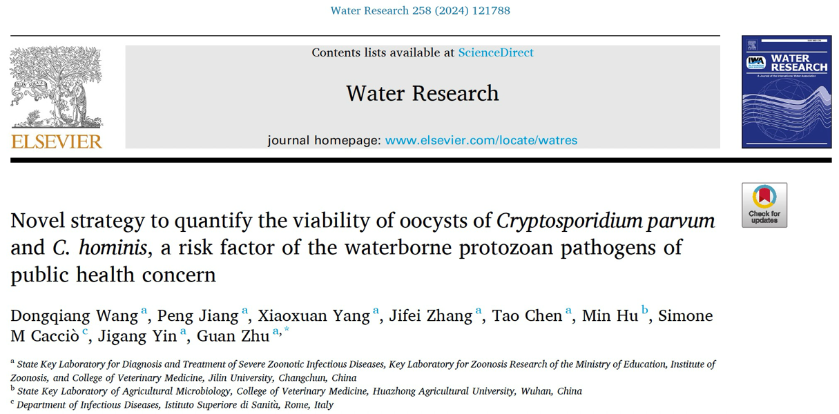 近日,吉林大学朱冠教授团队于国际水资源顶级期刊《Water Research》发表题为“Novel strategy to quantify the viability of oocysts of Cryptosporidium parvum and C. hominis, a risk factor of the waterborne protozoan pathogens of public health concern”的论文,报道了定量检测水源中隐孢子虫卵囊活力的新方法。此研究由王东强(博士生)等领衔,旨在解决现有检测方法无法灵敏有效区分隐孢子虫种类和活力的问题,以提供更准确的公共卫生风险评估手段。