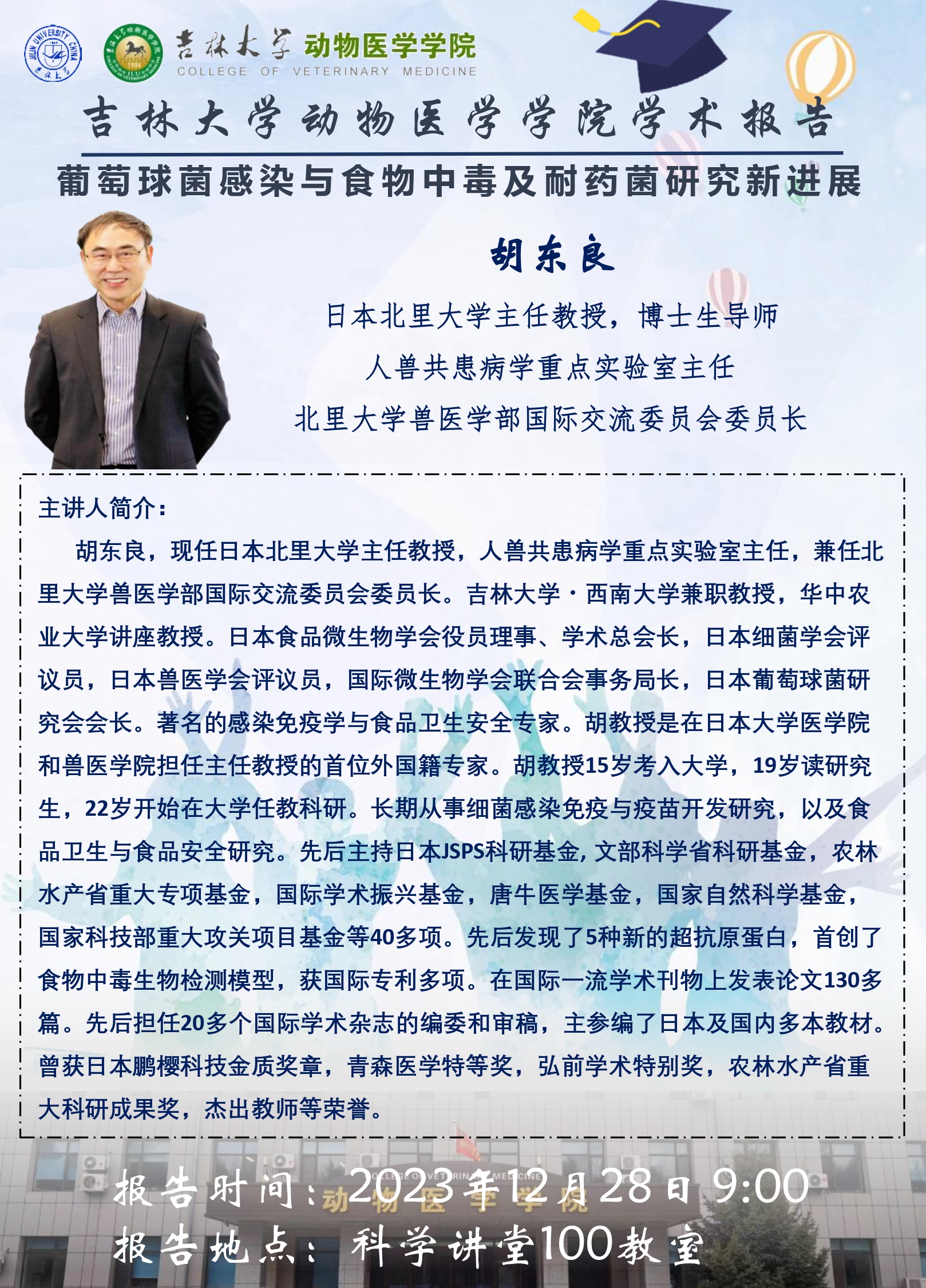 吉林大学动物医学百家乐真人视讯 学术报告—葡萄球菌感染与食物中毒及耐药菌研究新进展