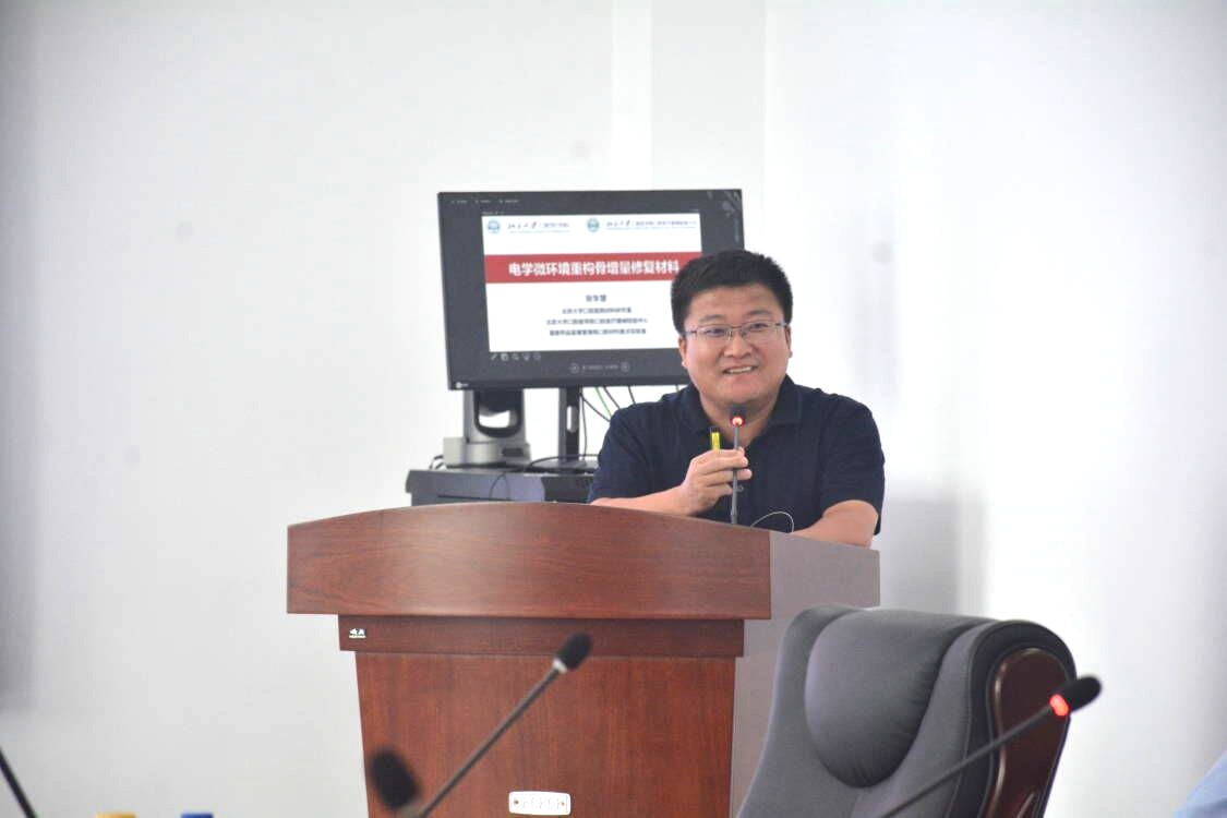 北京大学口腔医院口腔材料研究室主任,国家“优青”获得者张学慧教授,以《电学微环境重构骨增量修复材料》为题,介绍了国内牙齿缺失作为老年人第一大疾病,目前临床治疗主要以胶原膜为物质基础的引导骨再生,现有材料性能不能满足需求的情况下,研究团队以“电学微环境重构”作为骨修复策略,发展颌骨修复临床新策略,仿生构建电热协同PDA@BTO/P(VDF-TrFE)电学复合膜以促进成骨。这种电学介导的调控机制通过优化局部微环境,为骨缺损的修复和关节炎的缓解提供了新的治疗策略。