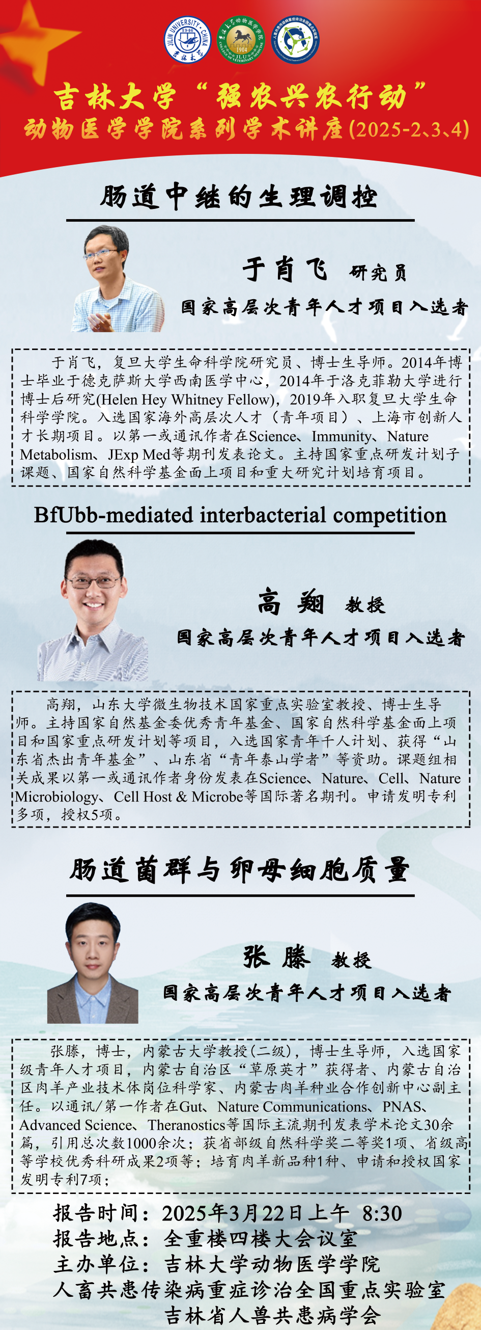 吉林大学“强农兴农行动”动物医学百家乐真人视讯 系列学术讲座(2025-2、3、4)