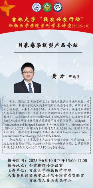 吉林大学“强农兴农行动”动物医学百家乐真人视讯 系列学术讲座(2025-10)