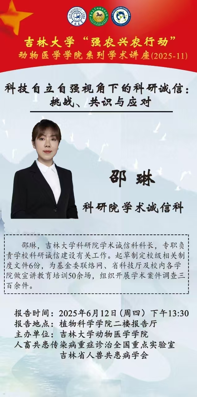 吉林大学“强农兴农行动”动物医学百家乐真人视讯 系列学术讲座(2025-11)