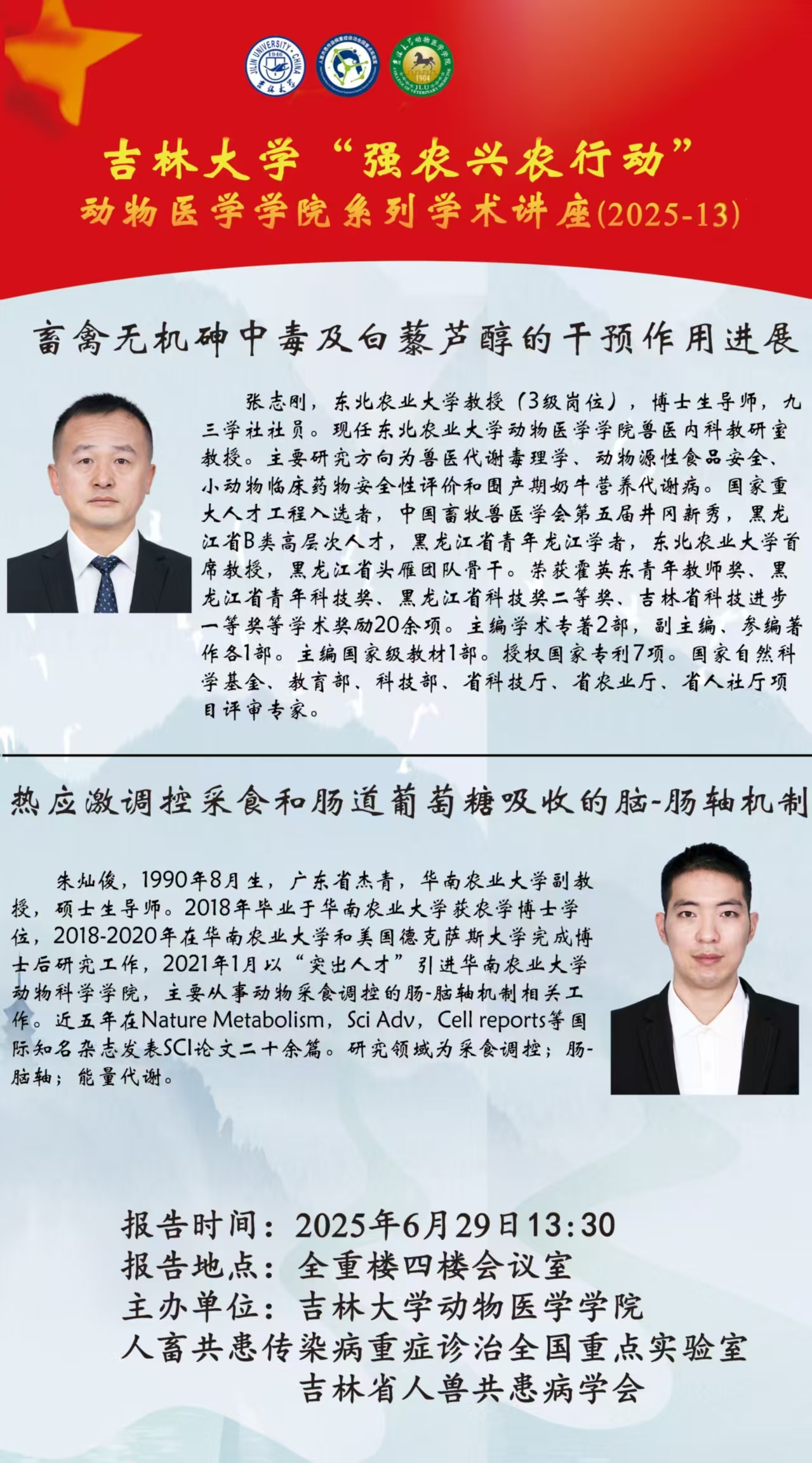吉林大学“强农兴农行动”动物医学百家乐真人视讯 系列学术讲座(2025-13)