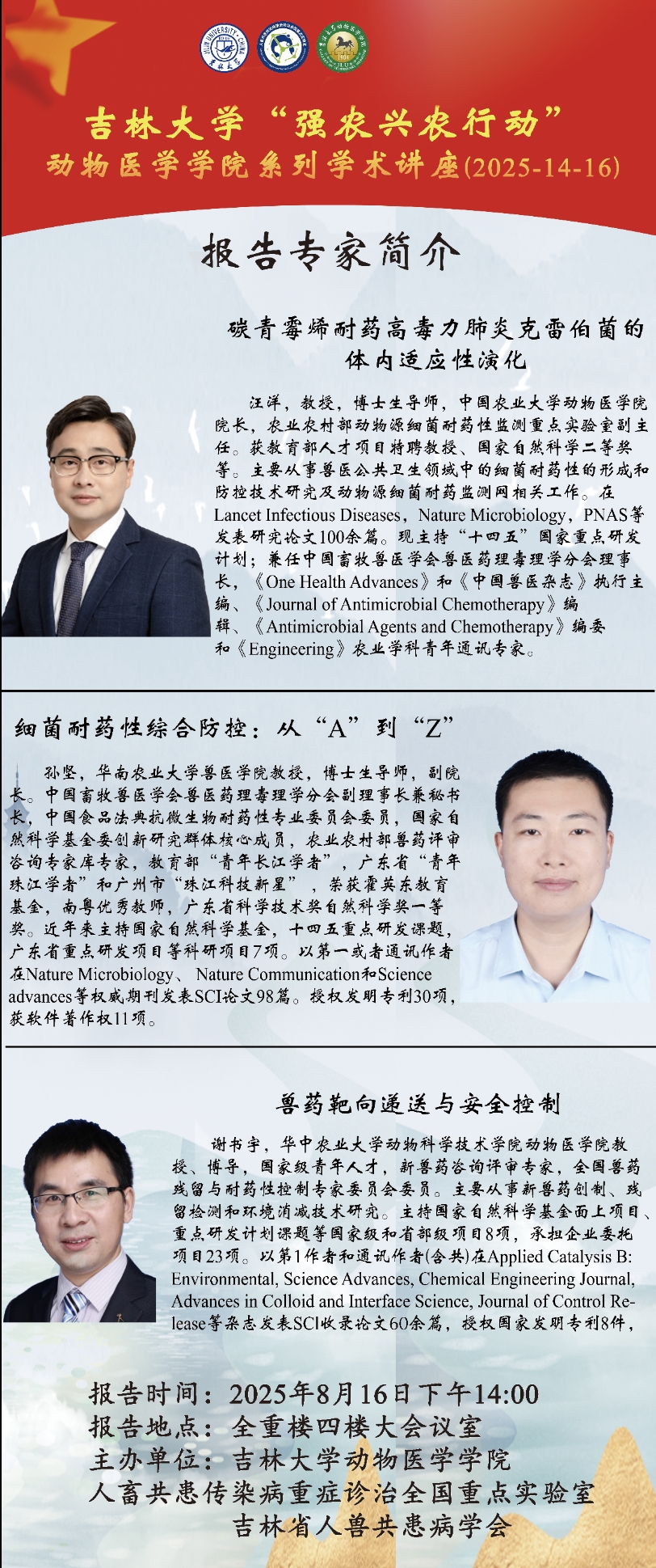 吉林大学“强农兴农行动”动物医学百家乐真人视讯 系列学术讲座(2025-14-16)