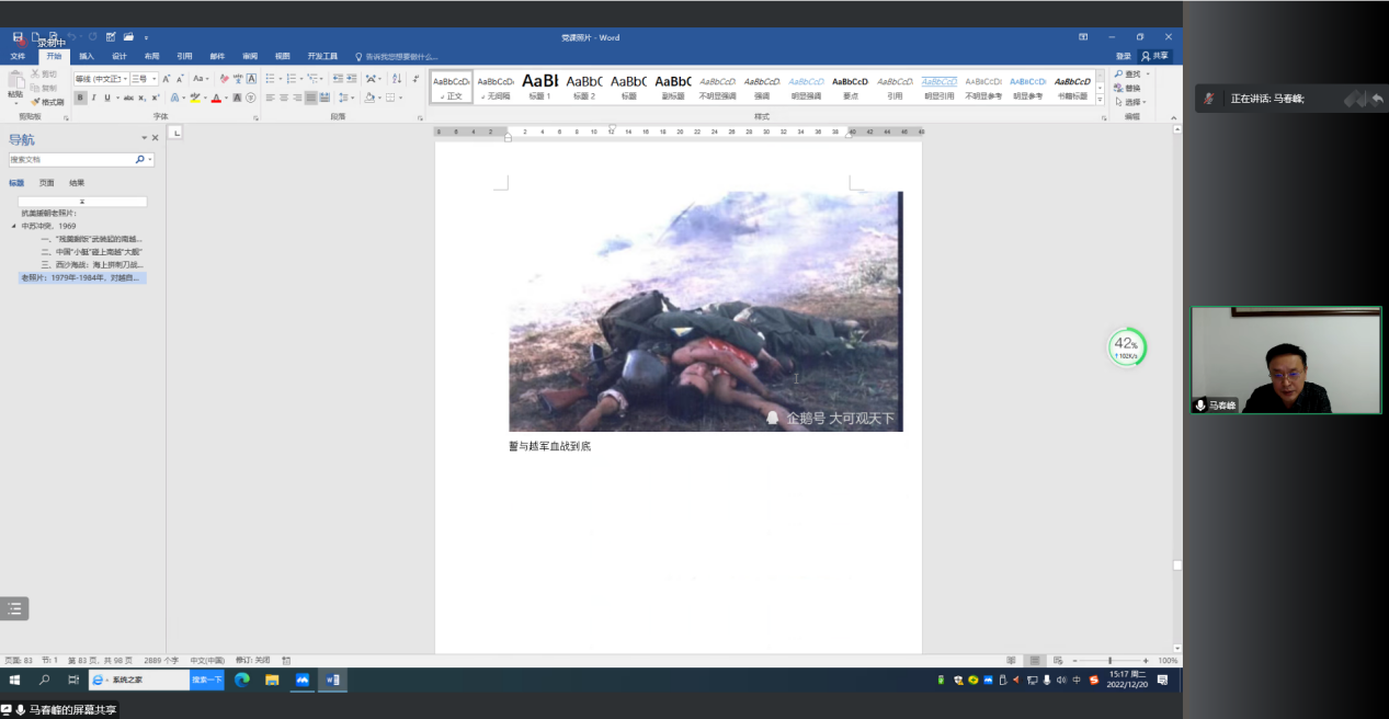会议最后,马春峰院长播放了抗美援朝、中苏冲突、越南保卫战、中印边境自卫反击战西沙海战等珍贵影像资料,并用他的参军经历向同学们深刻阐释了“强国必强军,强军必拥军”的内涵。