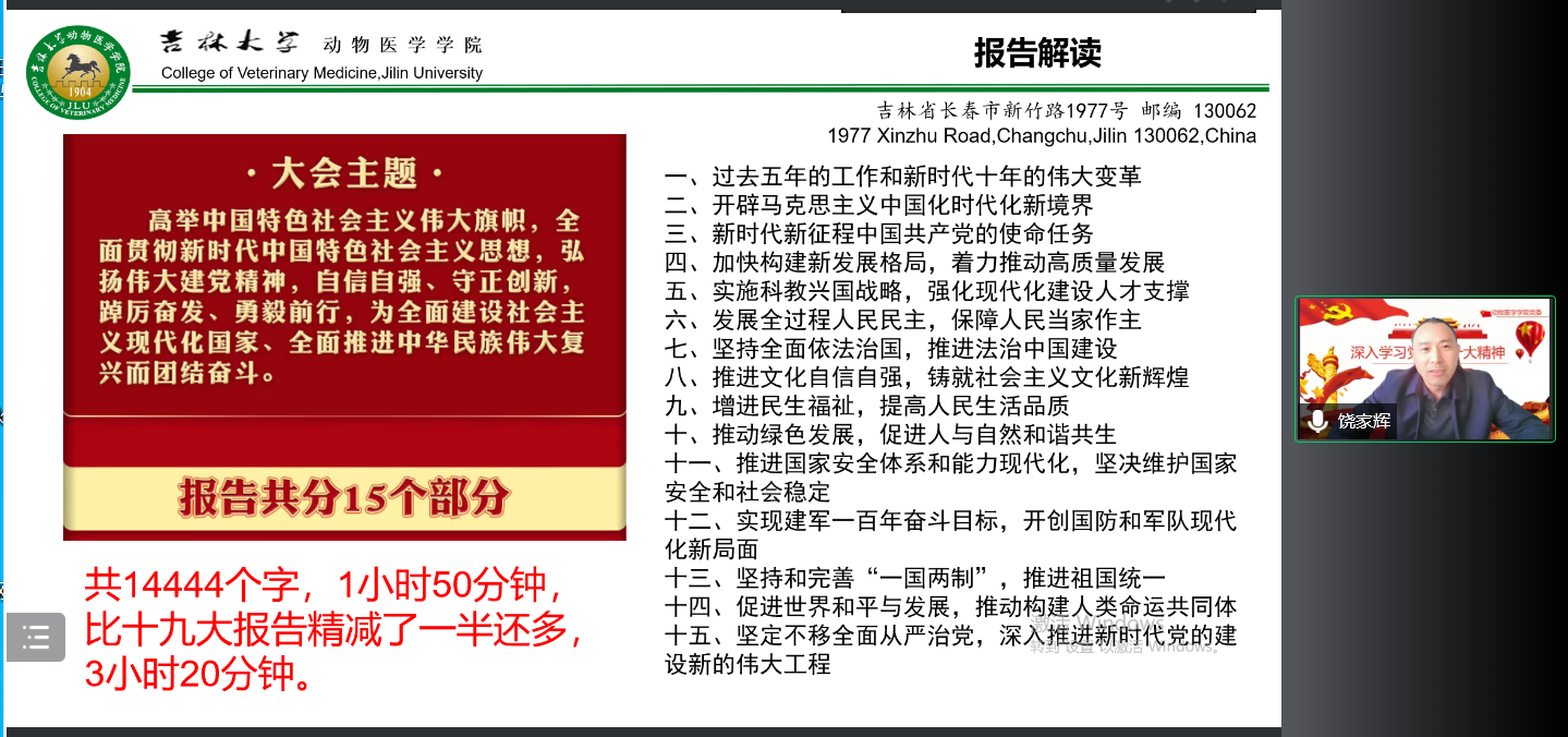 临床兽医学系教工党支部通过线上形式举行“学习贯彻落实党的二十大精神”专题会议,百家乐真人视讯