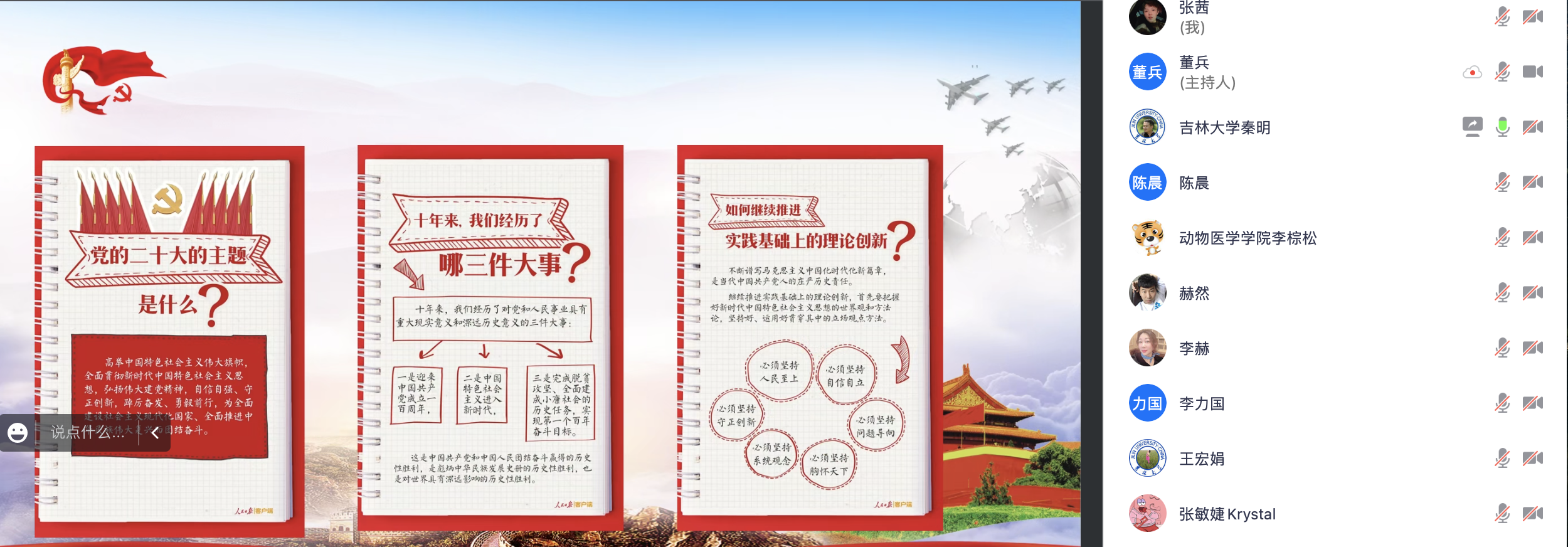 会议上,秦书记以《二十大报告解读之中国共产党的自我革命》为主题展开,党课内容思路清晰,环节紧凑,重点突出,设计合理。让大家能够更清楚、更容易理解党的二十大的主要内容和内涵。秦书记首先从“党的二十大的主题是什么?”、“十年来,我们经历了哪三件大事?”等十四个问题来带领大家回顾了二十大报告的主要内容及精神,随后秦书记为大家讲解了“八七会议”、“遵义会议”、“延安整风”、“西柏坡会议”、“十一届三中全会”以及“党的十八大”这些党一步步走向繁荣富强的过往历史,使得大家更容易、更深刻的理解了我们的光辉党史。在会议的最后秦书记以一段深刻且精炼的结语来结束了本次党课。