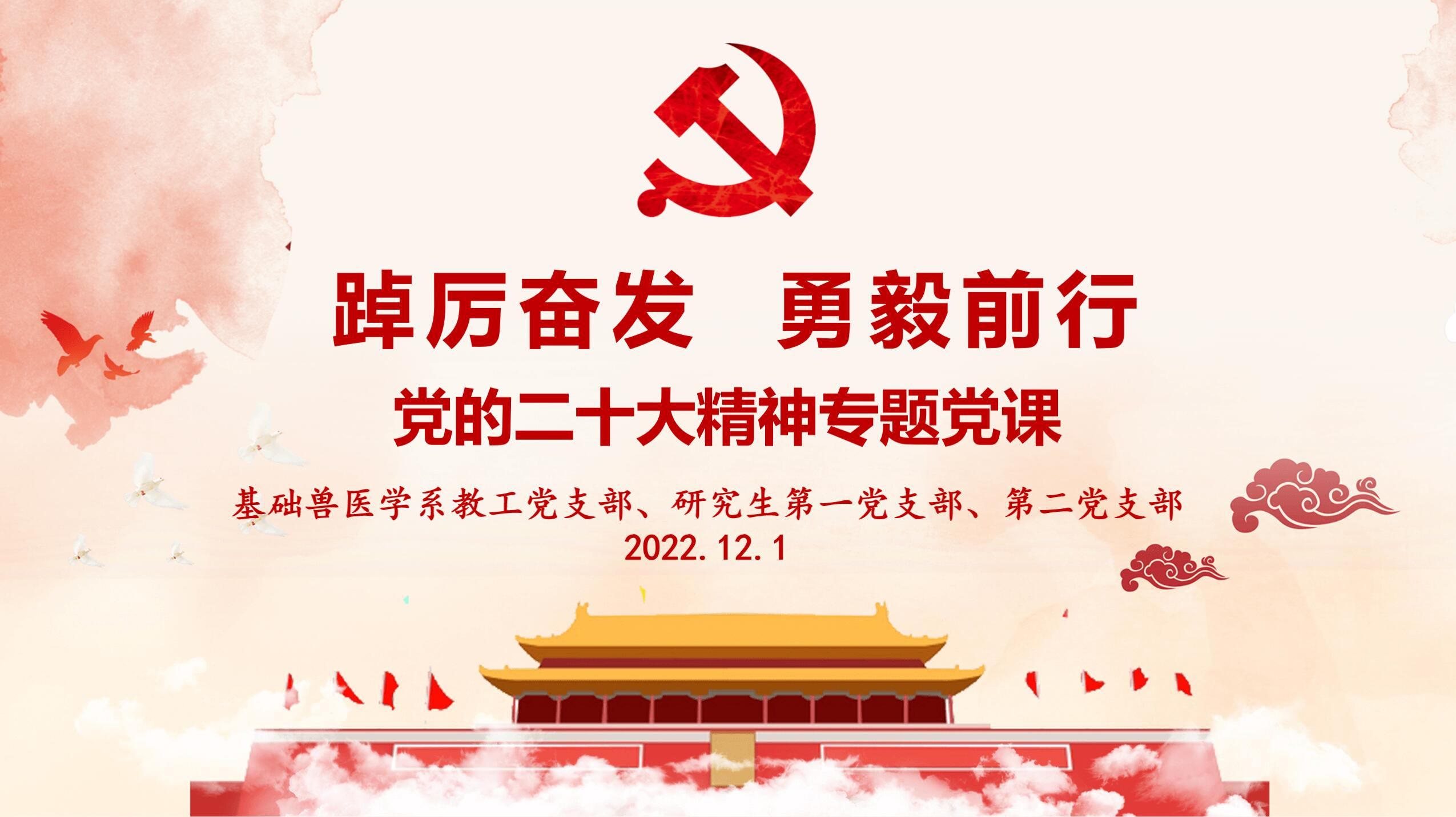 2022年12月1日,基础兽医学系教工党支部联合研究生党支部线上开展学习党的二十大精神主题党日活动。活动由基础兽医学系教工党支部书记宋德光教授主持,动物医学百家乐真人视讯