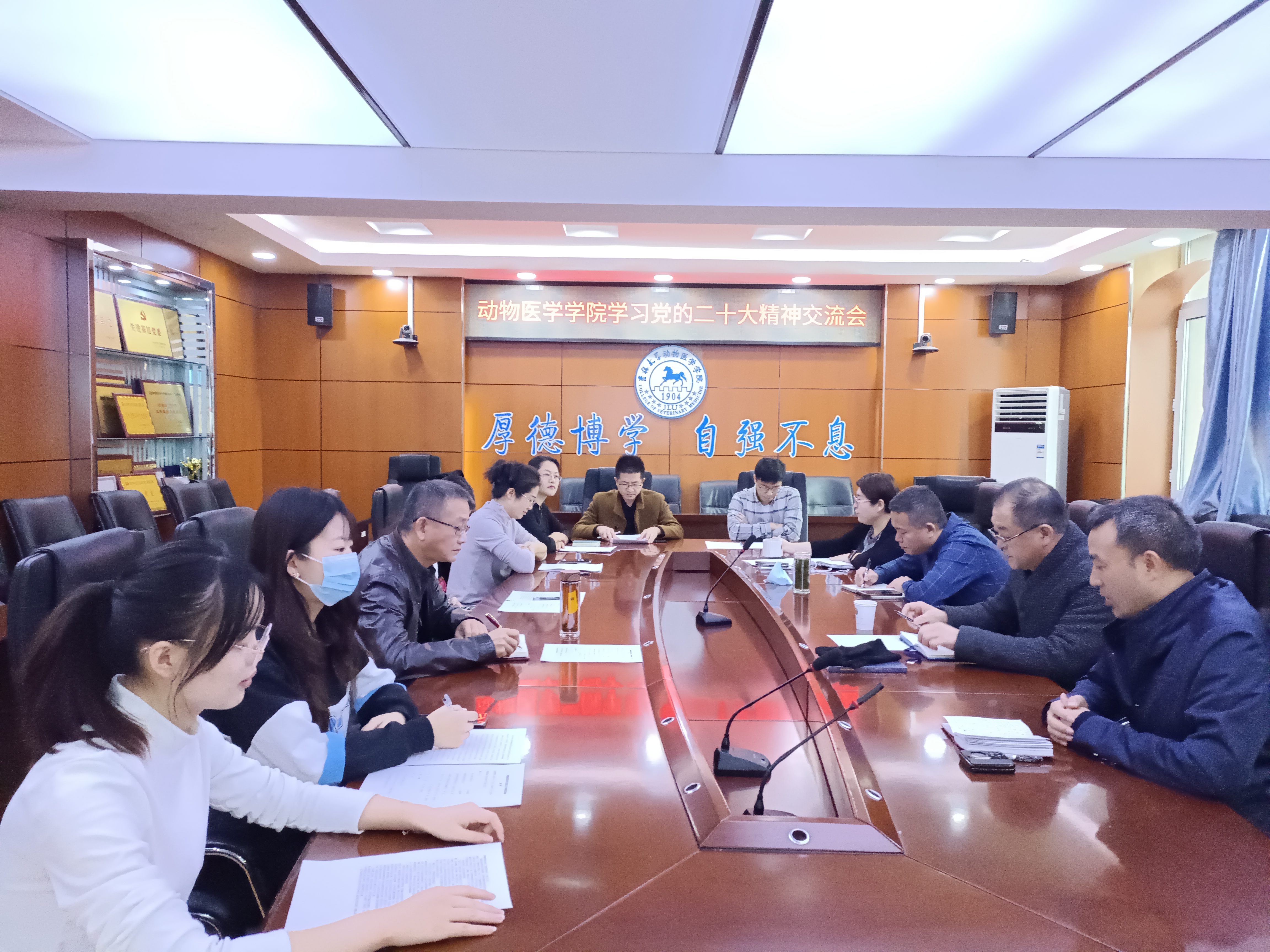 在会上,大家纷纷表示,要聚焦中心任务,牢记“立德树人”初心使命,把党的二十大精神落实到日常的教学科研工作中,为培养更多基础深厚、能力过硬、德才兼备的高素质人才作出自己的贡献;要面向国家畜牧业领域的重大需求做好科研工作,致力于解决重大动物疫病防控问题,为全面推进乡村振兴,大力推进中国式农业农村现代化担当有为。作为青年学生,要明确自身的使命任务,怀揣梦想,砥砺奋斗,在动物医学领域深耕细作,为人与动物的健康做出自己的贡献。