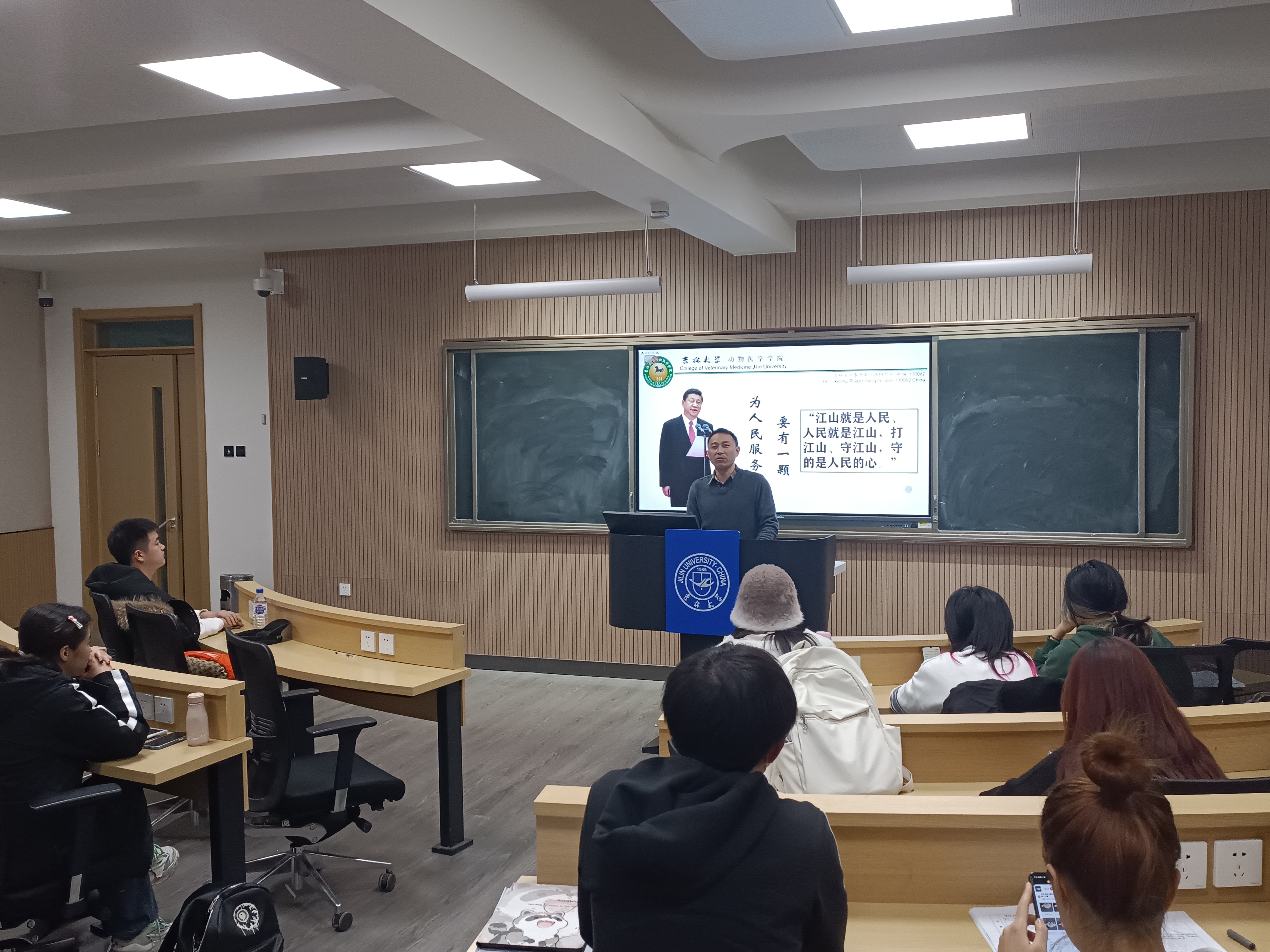 饶家辉书记以“坚守信仰:全心全意为人民服务”为主题,为入党积极分子上党课。他从“全心全意为人民服务”的由来、发展历程娓娓道来,详细阐释了“全心全意为人民服务”的内涵和核心。他以黄大年、张桂梅、袁隆平、吴孟超、秦玥飞等时代楷模的生动实例带领学员感受榜样的力量、领悟时代的精神。让同学们在故事中感悟中国共产党的初心和使命。
