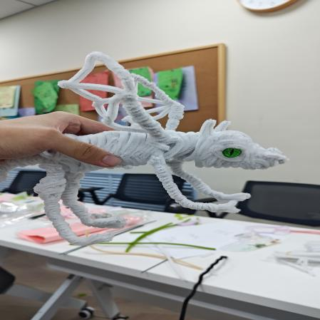 活动现场,编织材料和工具一应俱全,扭扭棒、编织线等材料整齐摆放,供同学们自由选择。参与者根据个人兴趣分成多个小组,有的编织出可爱的小恐龙,憨态可掬;有的制作出温馨的圣诞树,节日氛围浓厚;还有的则编织出优雅的郁金香和精致的烟花棒;更有同学积极发挥想象力,动手创作属于自己的独特作品。每一件作品都凝聚着同学们的智慧和心血,也展现了他们对美好生活的向往和追求。