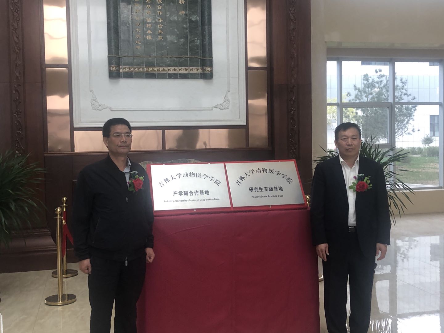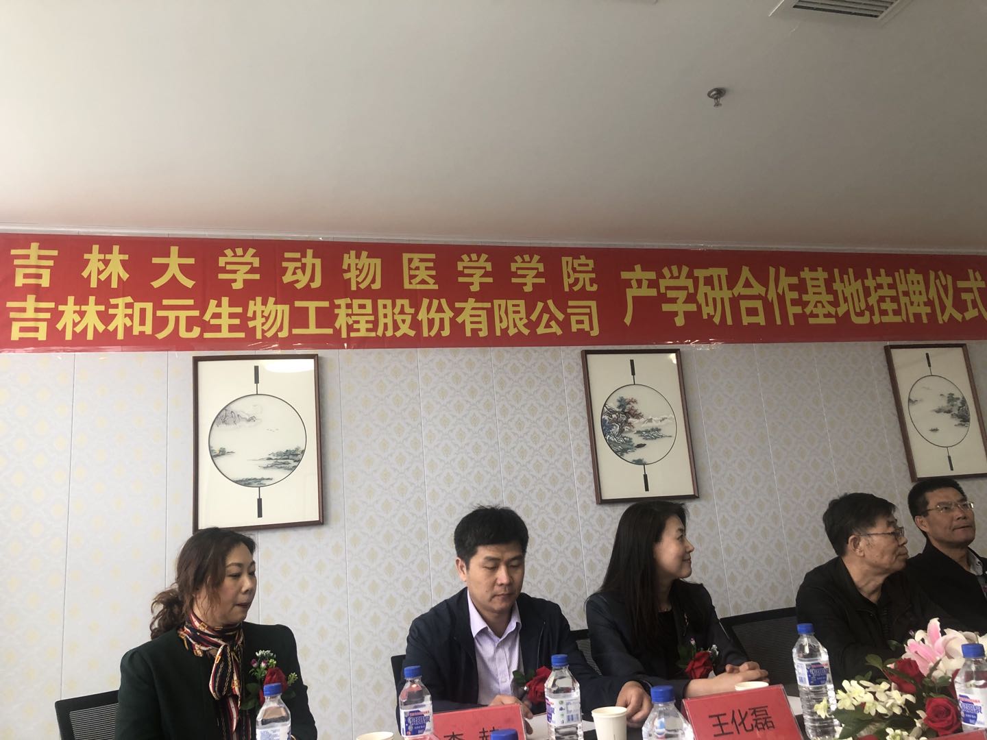 产学研合作基地及教学实习基地挂牌仪式在吉林和元生物工程股份有限公司(以下简称和元生物)隆重举行。和元生物公司董事长张中洋,常务副总经理吴金、副总经理吕营、特聘技术专家冯书章、董事会秘书韩宇阳、研发总监许会会、技术与营销总监郭春红;动物医学百家乐真人视讯