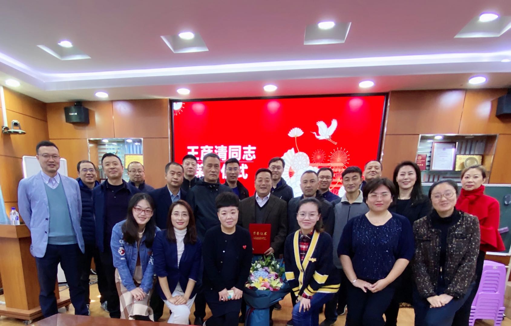 饶家辉副书记简要介绍了王彦清同志的工作简历,党务办公室主任周靓献上鲜花,学部离退休办公室李大林主任为其颁发荣休证书。