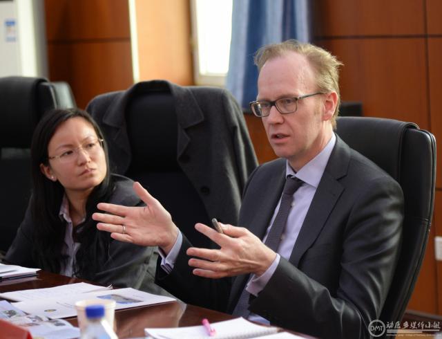 国际交流处合作办学科科长白玉老师和何江海老师与罗宾.亨利教授一行进行了座谈,