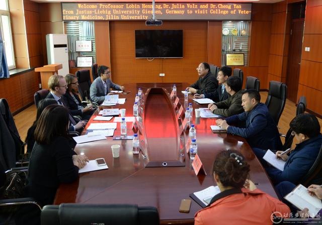 2016年4月8日,德国吉森大学中国事务代表罗宾.亨利教授、国际办公室主任沃尔茨.朱丽亚女士及中国事务协调员程严女士一行3人来动物医学百家乐真人视讯