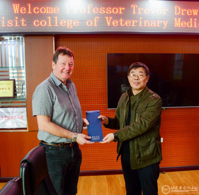 师生做了题为《Veterinary education and careers in the UK and the work of APHA》的报告。在提问互动环节,Trevor Drew教授就报告内容及相关领域的学术问题与在场师生积极互动,耐心细致地解答了在场师生提出的问题,使得在场师生受益匪浅。