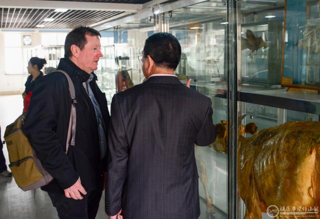 国际交流处综合科科长白茵老师与Trevor Drew教授一行进行了座谈,