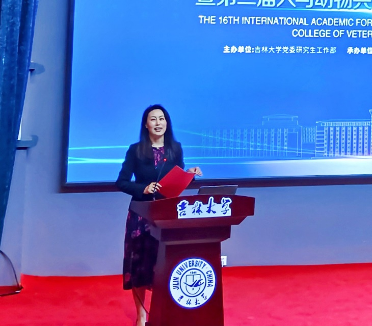 于瑶副部长代表吉林大学研究生院、党委研究生工作部对各位远道而来的老师和同学表示欢迎,对兽医学科建设成的成果表示肯定,对本次论坛的顺利召开表示祝贺,并指出,希望博士生作为未来国家科研人才的中流砥柱,在科学研究、学术创新的过程中,能够不忘初心、牢记使命,响应国家科技强国号召,为中华民族伟大复兴贡献更大力量。