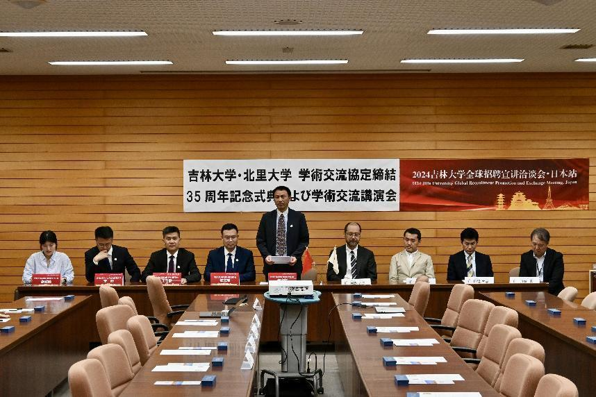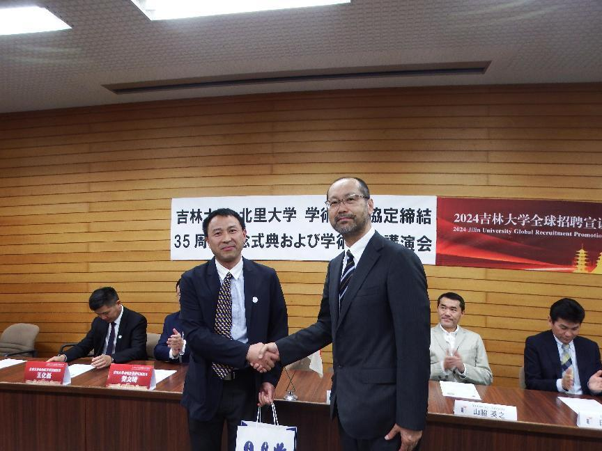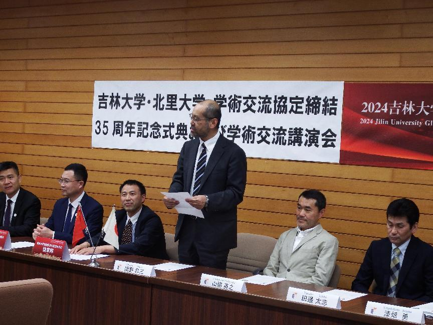 党委书记饶家辉分别进行了热情洋溢的致辞,对两校兽医学科三十五年来取得的成就给予了高度评价,并对未来的发展提出了殷切期望。饶家辉书记回顾了两校交流三十五年的发展历程。自1989年4月17日,长春兽医大学与日本北里大学签署《关于加强学术交流的备忘录》及其实施细则,两校就开展密切交流合作。互派师生进修访学,互聘兼职教授,进一步促进了中日文化和学术交往,加深了两校师生的沟通、了解和交流。冈野昇三学部长对吉林大学兽医学科创建120周年表示祝贺,并愿以此为契机,加强深度合作,就联合办学,共同培养本科生、硕士生提出了可行的意见和建议,并期待9月份回访吉林大学。