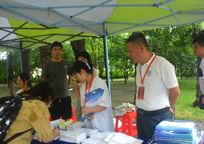 党委副书记秦明、研究生辅导员王慧丽老师一大早就赶到迎新现场,全面安排各项工作,精心布置、以确保迎新活动顺利推进。研究生志愿者们细致耐心,认真负责,仔细核对新生信息,为新生办理登记注册,并热心的为同学们答疑解惑,他们忙碌穿梭的身影在校园内形成了一道道靓丽的风景线。