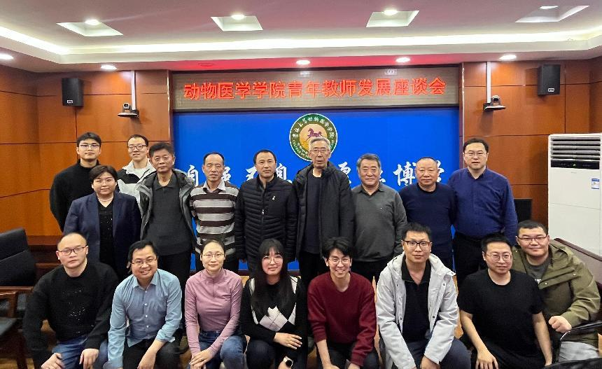 在兽医楼三楼会议室举办青年教师发展座谈会。党委书记饶家辉、副书记谭瑶、副院长董兵,退休老教授王哲、柳增善、丁壮,教学督导张乃生、高丰及近三年入职的青年教师参加了本次座谈,座谈由副书记谭瑶主持。