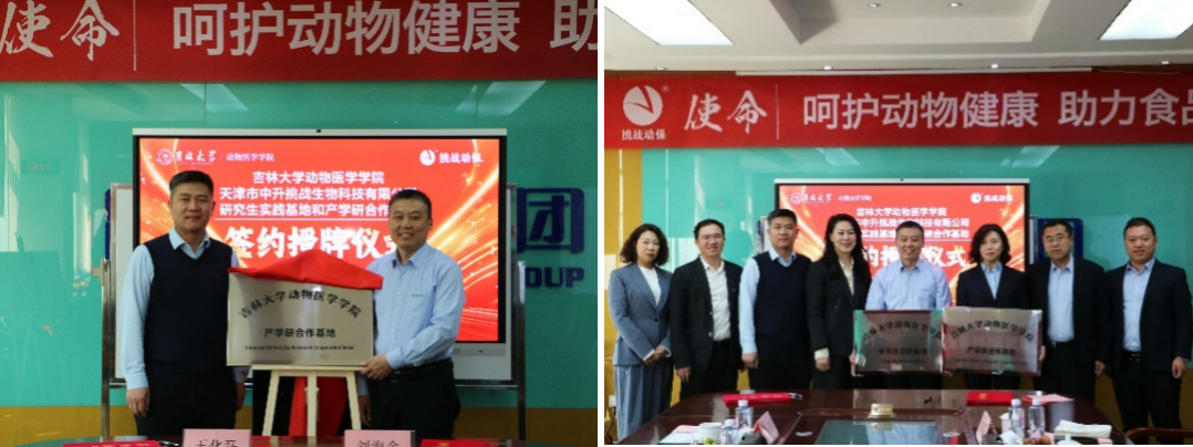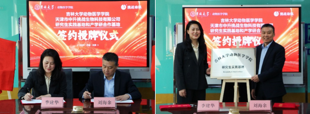-天津市中升挑战生物科技有限公司研究生实践基地和产学研合作基地落成挂牌仪式在天津市中升挑战生物科技有限公司举行。出席揭牌仪式的领导有:吉林大学动物医学百家乐真人视讯