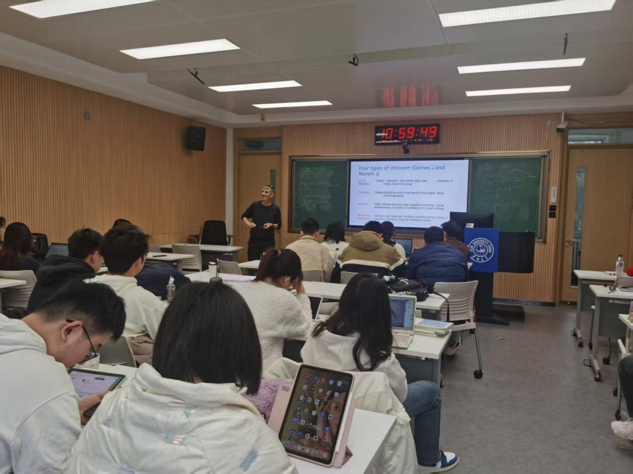 课程初期,面对全英文授课环境,部分同学存在畏难情绪,课堂互动较为沉默。Langford教授及时调整教学节奏,通过幽默的语言、生动的案例以及耐心的引导,逐步打消学生的顾虑。随着课程推进,课堂氛围愈发轻松活跃,同学们不仅能够熟练跟上授课节奏,还主动开口用英语交流观点、提出疑问,在提升专业素养的同时,也显著增强了英语学术沟通能力。