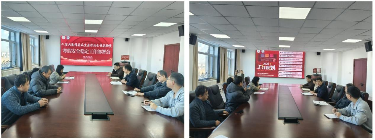 相关要求,人畜共患传染病重症诊治全国重点实验室组织召开了寒假安全稳定工作部署会暨2026年度重点工作研讨会。全重实验室全体行政工作人员以及中心仪器室、P2动物房相关负责人参加了会议。会议由全重实验室专职副主任宋吉武主持。